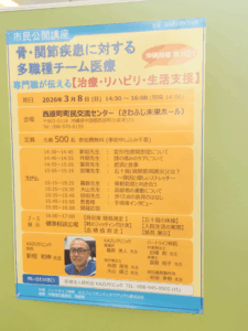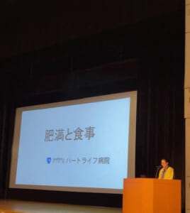 市民公開講座のテーマが「骨・関節疾患に対する多職種チーム医療」とのことで、膝や腰などの関節に痛みが出る原因の1つにもなる「肥満と食事」についてのお話をさせて頂きました。