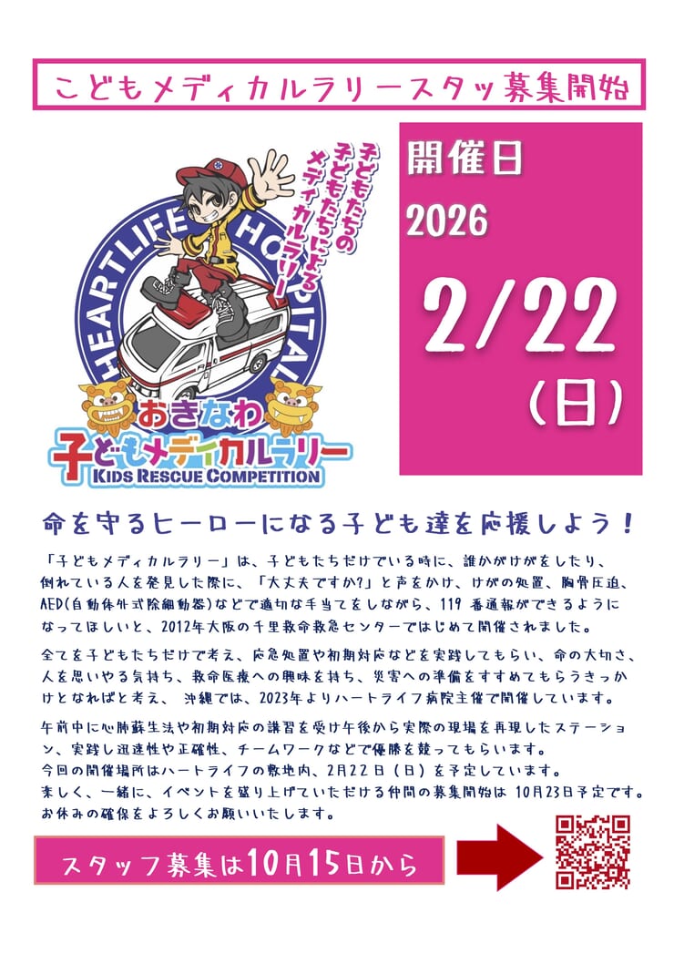 ぜひ、沖縄の、ハートライフの子どもメディカルラリーにご参加をお願いします!!