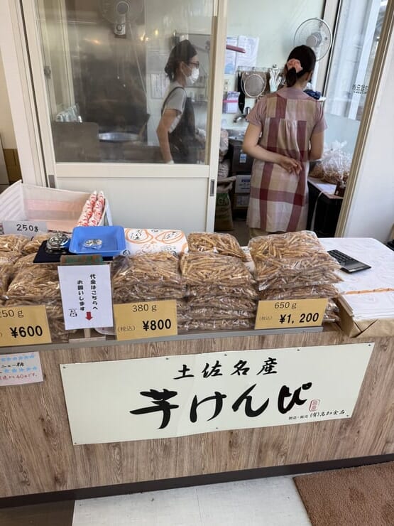 お土産には、JR高知駅のキオスクにある実演販売の 土佐名物の芋けんぴ