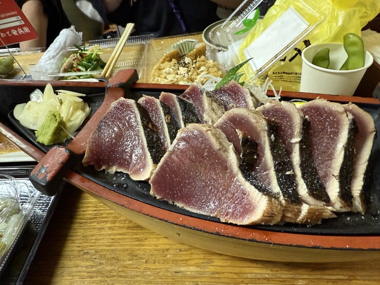 土佐に行くときは、ぜひ、ひろめ市場で本場のカツオのタタキを食べてくださいね〜〜!