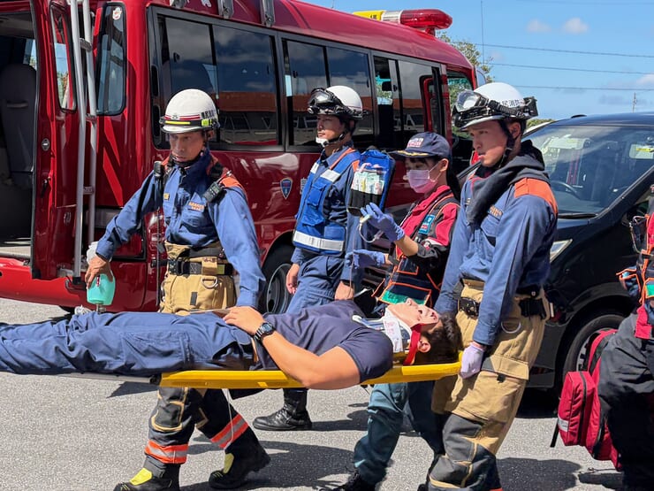 島尻消防ドクターカー連携訓練の二日目は、ER研修2ヶ月目の大城先生が訓練に参加しました。