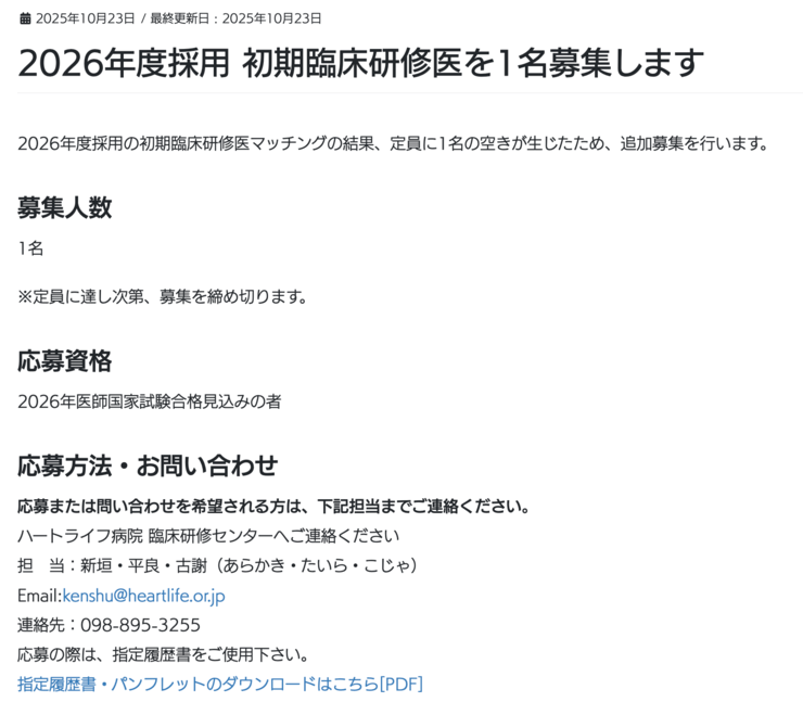 昨日、次年度の新規臨床研修医のマッチング結果がでました。