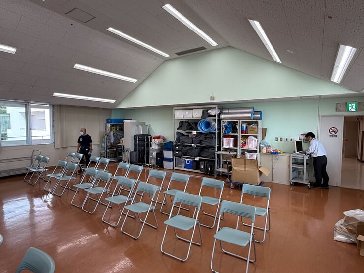 広く使うために、ホールの後ろにずっと置かれているACLS沖縄トレーニングサイトの物品も