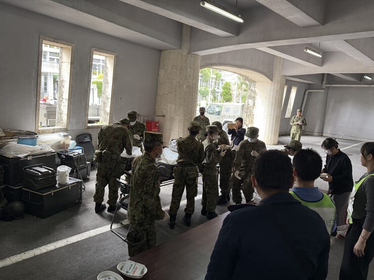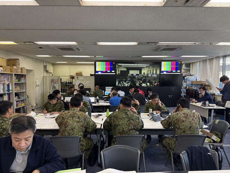 実災害同様、自衛隊や市町村、自治体、保健所などと連携しながら机上訓練を実施しました。
