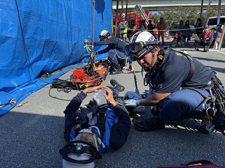 南風原イオンとユインチホテル南城で2日間にわたって行われたロープレスキューの競技会