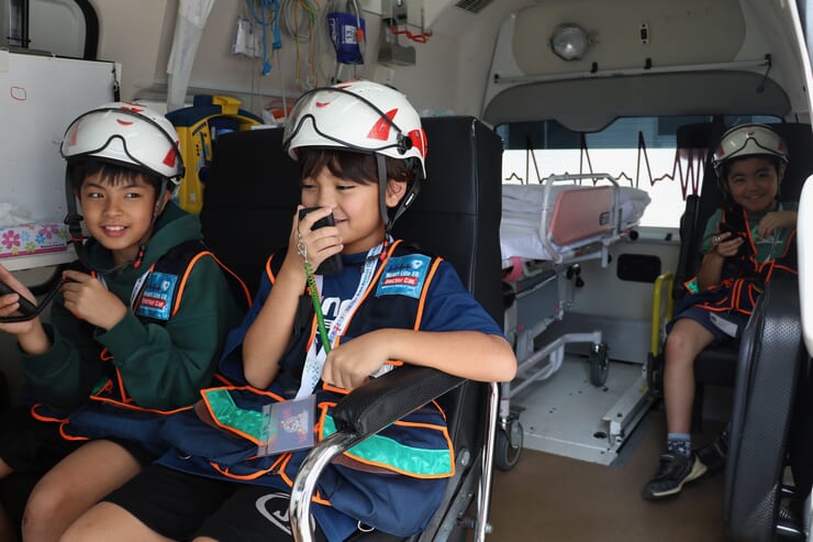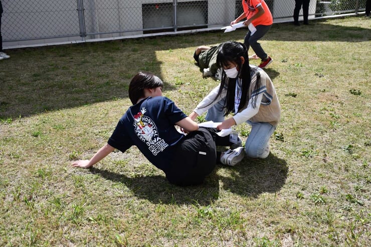 子どもたちだけで考えて、救出、救助、救命の現場を実践するステーションを回ってもらいました。