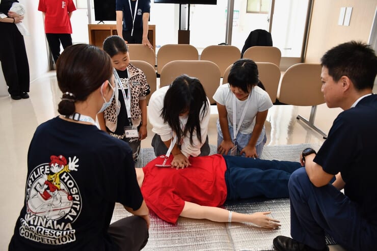 心肺蘇生の仕方、119番通報の仕方、窒息解除の仕方、アナフィラキシーへの初期対応などを講習