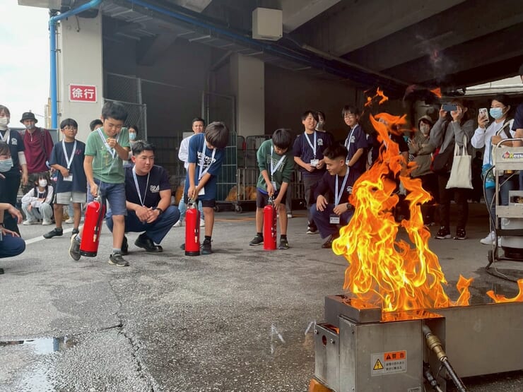 こんな経験、普通できないよねという、初期消火の現場、消火器の取り扱い実習や