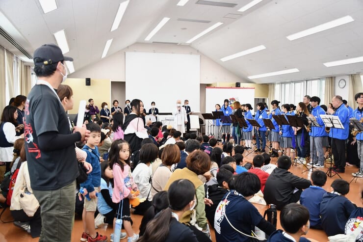 浦添市吹奏楽団、沢岻小学校金管バンドのみなさんに加えて、今年は興南学園吹奏楽部のみなさんに