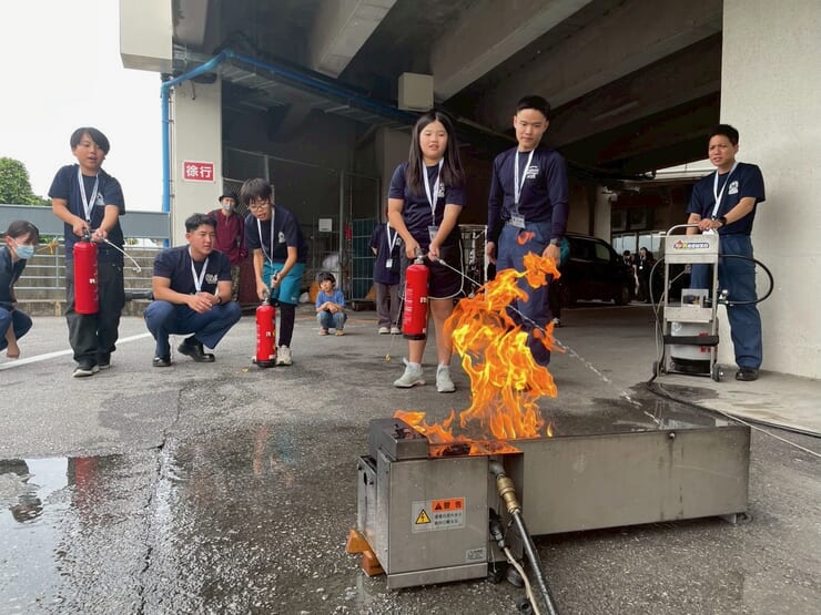 消火訓練で安全管理、消すゾウ君の操作をしていただいた東部消防の金城さん