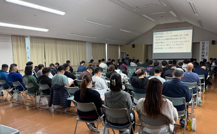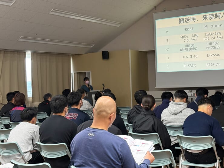 また今回は、救命士の学生実習で当院に来てくれていた新城救命士が、立場を変え、消防職員として症例検討会で発表をしてくれました。